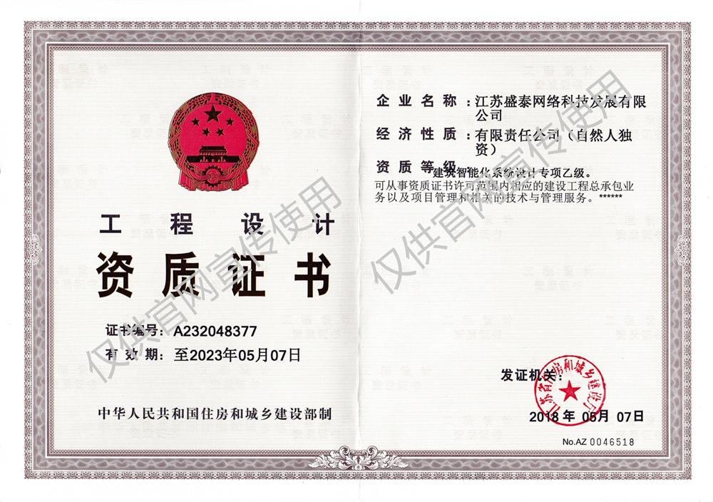 喜訊:熱烈祝賀公司榮獲建筑智能化系統(tǒng)設(shè)計專項乙級資質(zhì)