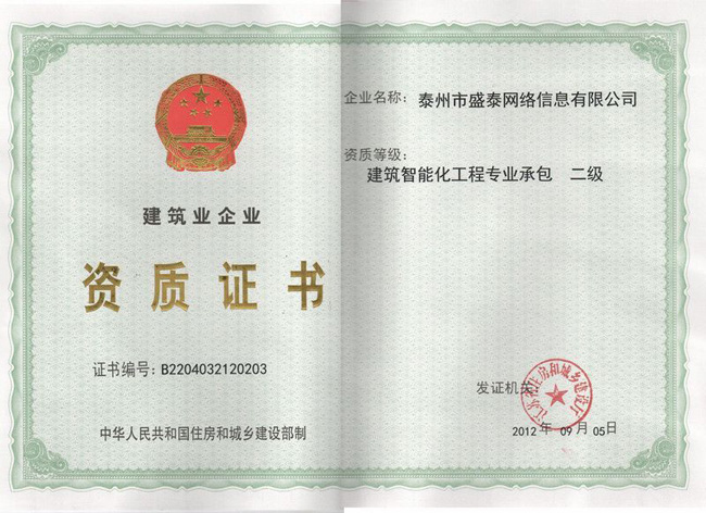 熱烈祝賀公司建筑智能化專業(yè)承包資質(zhì)(二級(jí))申請(qǐng)并獲得通過(guò)
